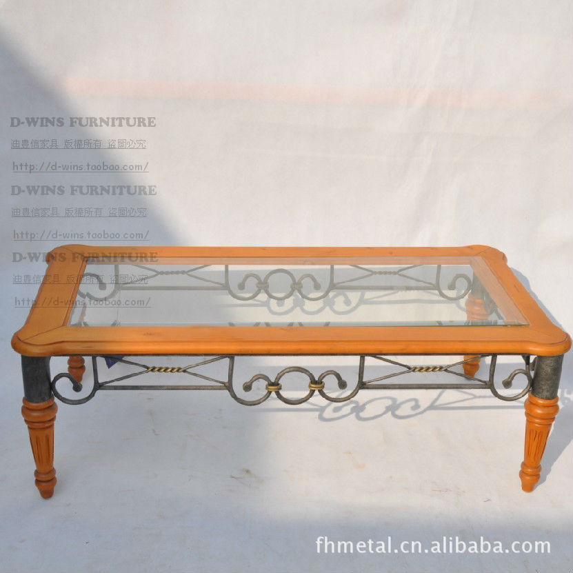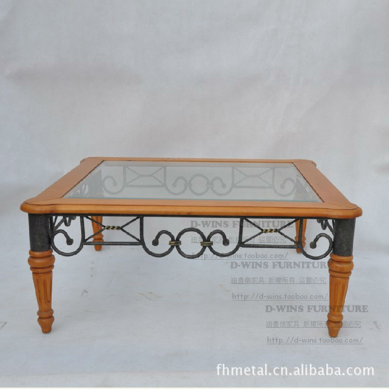 迪豐信供應(yīng)實木玻璃茶幾美式鐵藝茶幾 大方幾