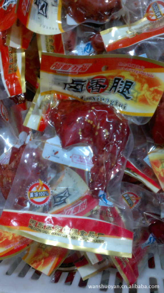 本鹵味系列產(chǎn)品以精選禽畜肉為原材料,采用科學方法,引進先進設備,結合傳統(tǒng)工藝精制而成,它具有衛(wèi)生、方便、美味之優(yōu)點,是居家旅游、酬賓宴客和饋贈親友的理想食品。本廠主要生產(chǎn)鹵制雞腿、琵琶腿、萬福源單小腿、鹵鴨腿、鹵制雞翅、麻辣雞翅、山椒泡翅尖、麻辣鴨翅、山椒鳳爪、泡鳳爪、香酥長爪、香酥小爪、麻辣雞排、香酥雞排、五香鵪鶉蛋等,歡迎廣大客戶經(jīng)銷、代理洽談業(yè)務。