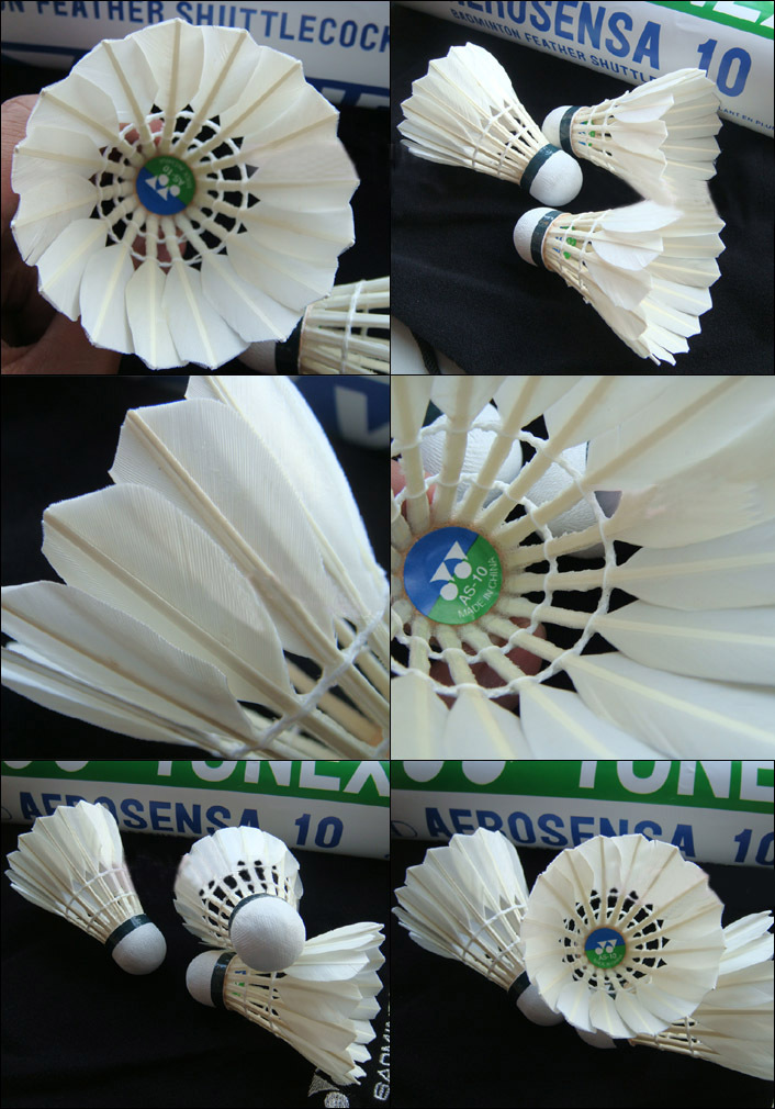 (1)羽毛球的外型要整齊,包裹的球托皮革要光潔,沒(méi)有皺紋,羽毛潔白且插片的角度要一致;