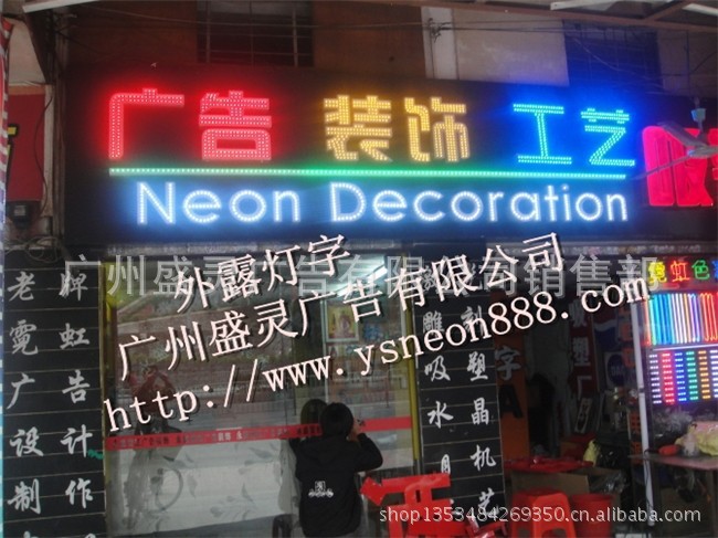 3、不受字的顏色的限制:一般內(nèi)發(fā)光字受有機板的限制,如紅色吸塑字,一般里面放的也是紅色光源,發(fā)出來的也是紅光,而外露發(fā)光字則不然,你可以將字烤成各種顏色的漆,晚上你需要亮什么顏色的燈就亮什么色的燈,一點不受底字的影響,而且大字由于離地面高,白天,LED外露的燈也不明顯。