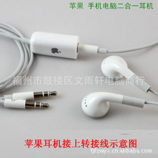 蘋果IPHONE/2in1耳機線/筆記本專用/IPHONE/3GS耳機/帶麥帶轉(zhuǎn)接線