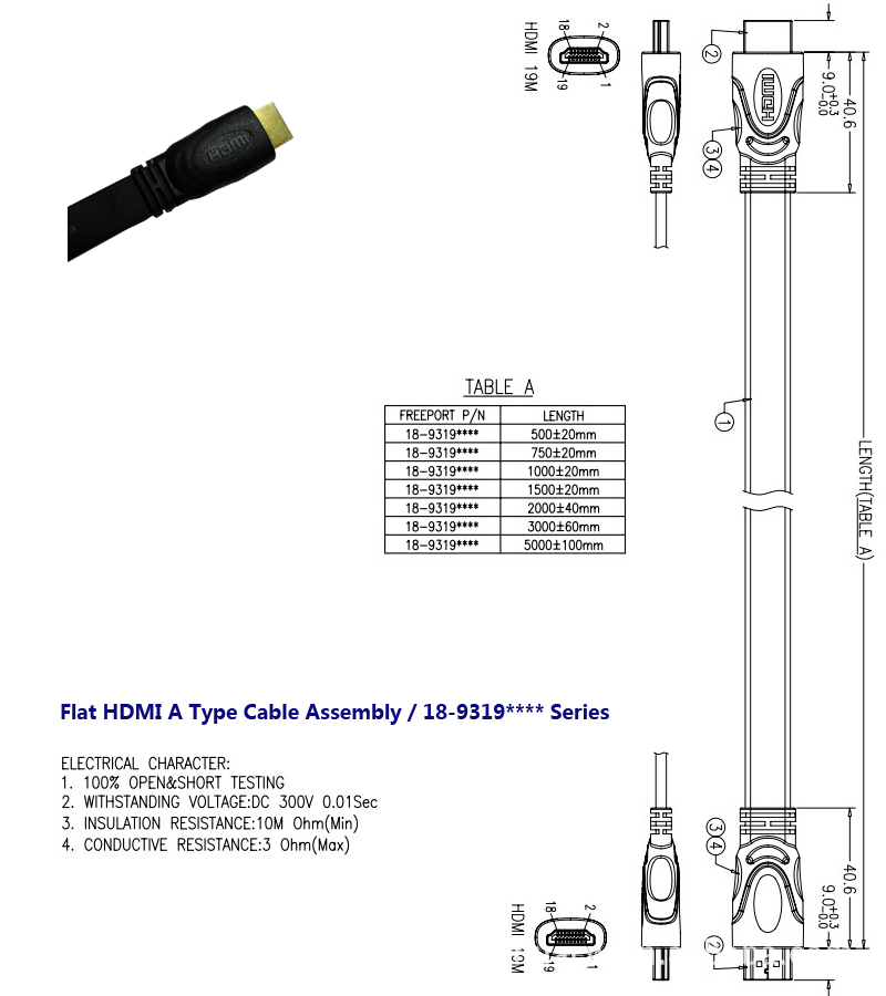 HDMI A TYPE CABLE 扁平線