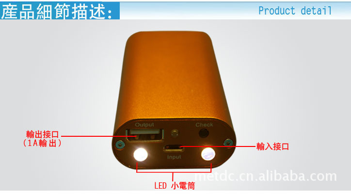 產(chǎn)品適合于IPHONE及安卓智能機(jī)的手機(jī)充電寶!大容量,充分保證您的出差,旅游,上網(wǎng),視頻的續(xù)航時間!特殊設(shè)計的USB輸出,可滿足IPHONE,IPAD及其他智能手機(jī),MP3,MP4,相機(jī),PSP等數(shù)碼產(chǎn)品充電!