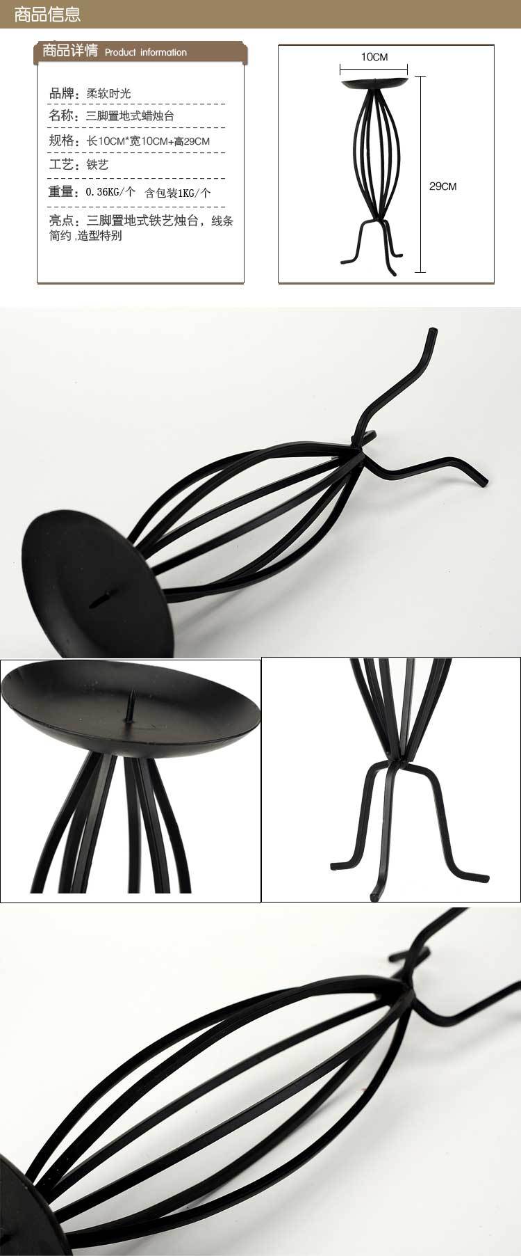 柔軟時(shí)光 歐式古典 鐵藝燭臺(tái)擺件 田園風(fēng)格 三腳置地式 蠟燭臺(tái)