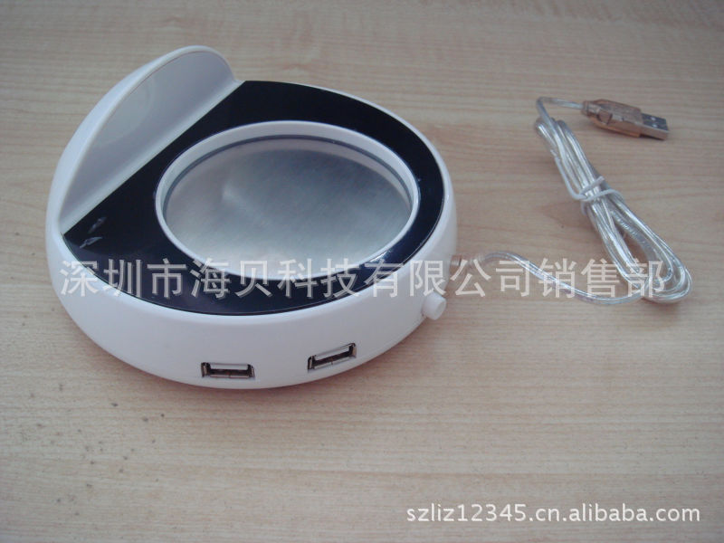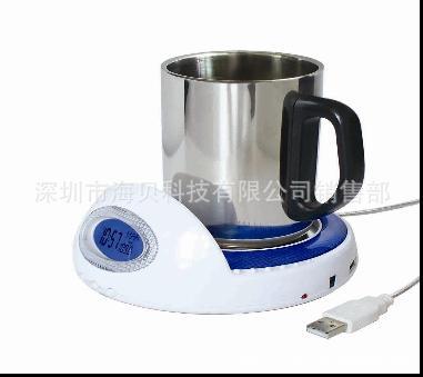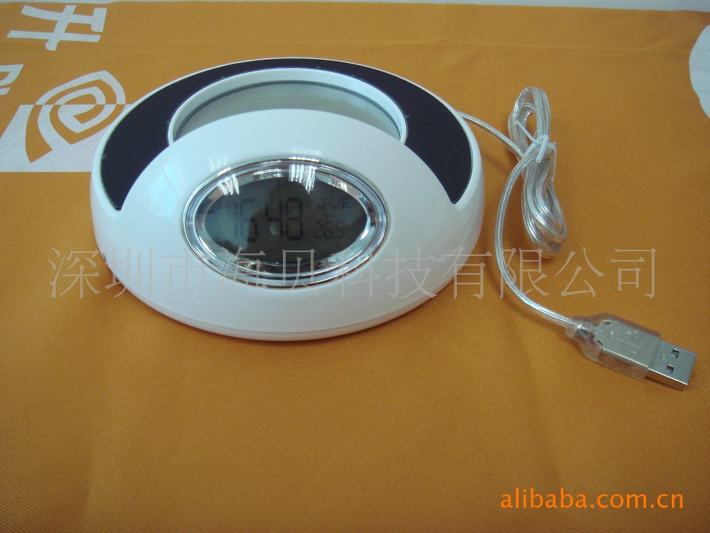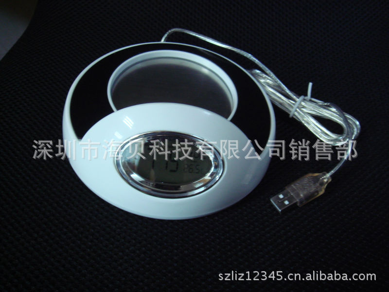 電子鐘萬(wàn)年歷USB4口HUB加熱保溫杯墊 多功能加熱杯墊(圖)