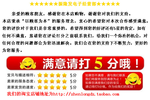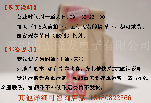 電子產(chǎn)品由于生產(chǎn)廠家的批次不同、IC版本的升級(jí)、會(huì)出現(xiàn)您所購(gòu)買的圖片上的寶貝和您收到的實(shí)物寶貝有所不同,比如文字、型號(hào)后綴、圖標(biāo)、生產(chǎn)廠家,但是功能、質(zhì)量沒(méi)有改變,這些情況都是非常常見(jiàn)的現(xiàn)象,相信技術(shù)人員都明白這些道理。所以請(qǐng)親一定要認(rèn)準(zhǔn)確再拍哦!本店如果非電子質(zhì)量問(wèn)題一律不可退貨哦!
