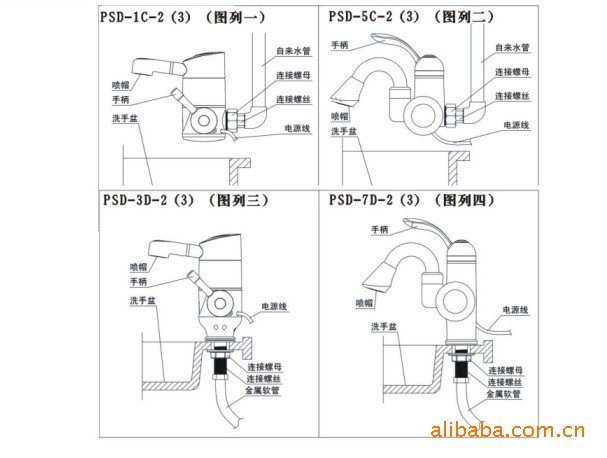 卸下原來自來水管(或洗臉盆自來水軟管)上的水龍頭,并把本產(chǎn)品的連接硬件安裝在自來水管上,再將主機(jī)安裝在連接件上,將主機(jī)安裝在洗臉盆上并與自來水金屬管軟管連接,通過固定螺母將其安裝牢靠。