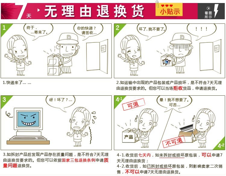 b、關(guān)于商品質(zhì)量問題售后郵費(fèi)問題,由于網(wǎng)絡(luò)薄利經(jīng)營,加之售后多數(shù)需要郵寄,在購買物品快遞簽收的日期開始,7天內(nèi)本店負(fù)責(zé)來回郵費(fèi),7-14天內(nèi)各自負(fù)責(zé)自己發(fā)貨的郵費(fèi),超過14天買家負(fù)責(zé)來回郵費(fèi),如給您帶來不便敬請(qǐng)諒解。