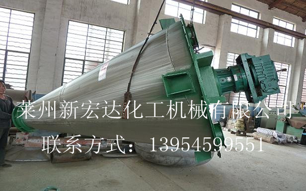 DSH型雙螺旋錐形混合機,它由噴液裝置、傳動部分、筒蓋、螺旋、筒體、出料閥箱等組成。