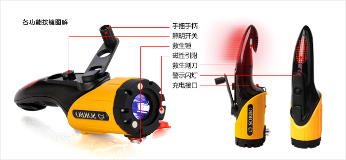 碩而博車用應(yīng)急Led手電筒逃生錘警示燈安全錘救生錘 SB-2009