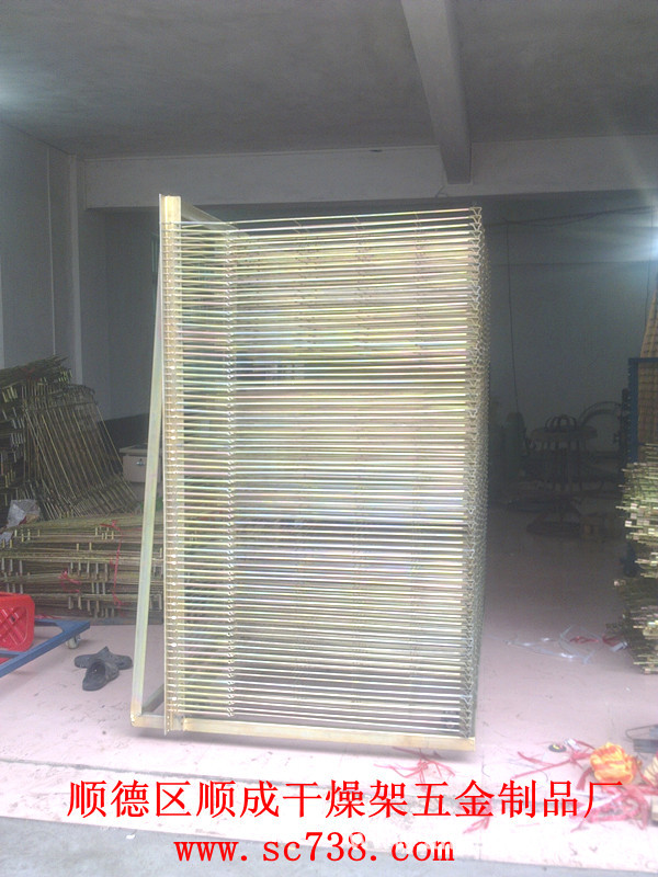 順成干燥架:專業(yè)訂做型大型烤箱干燥架:網(wǎng)片規(guī)格:2000*1060,層距:25,網(wǎng)格:160*200,工藝:整體電鍍彩鋅,總層:81