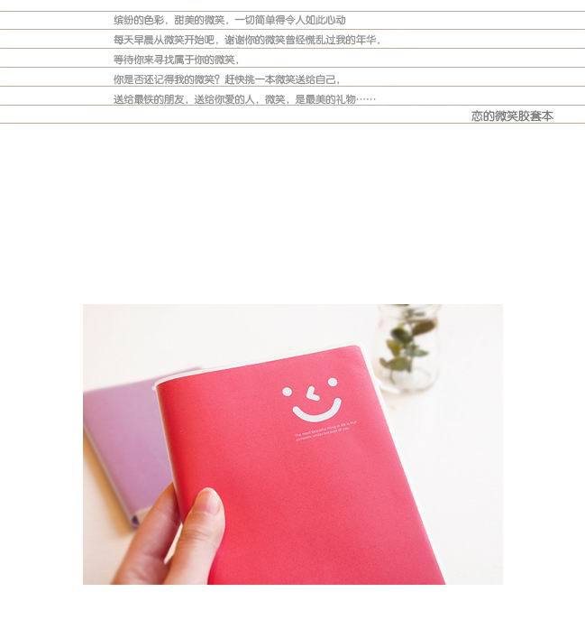 韓國新款文具 H5加厚純色笑臉日記本 戀の微笑軟抄本 記事本子