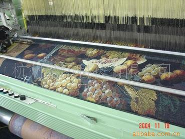 做工:掛毯用經緯色紗交織而成。先在電腦中用PHOTOSHOP處理好清晰圖片,再用紡織CAD軟件(如EAT軟件)配好掛毯每個組織,再把做好的掛毯電子文件發(fā)到數(shù)碼織機上織造,由經緯色紗交織而成。成品掛毯的背面由棉布作背襯。做工精細,平整。