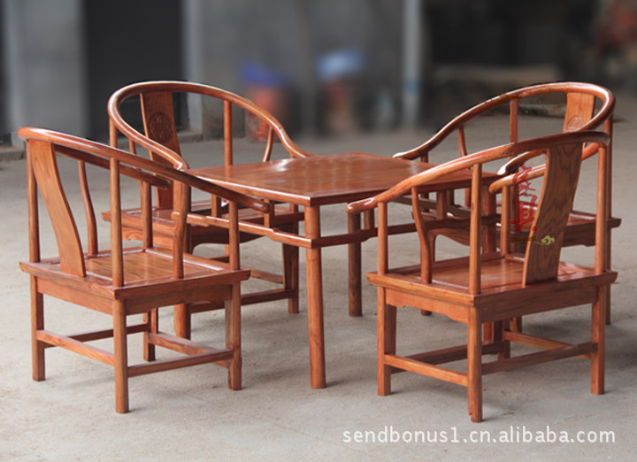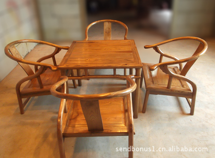 雅宜居實(shí)木 中式仿古 榆木家具 矮圈椅 方桌 茶桌 五件套