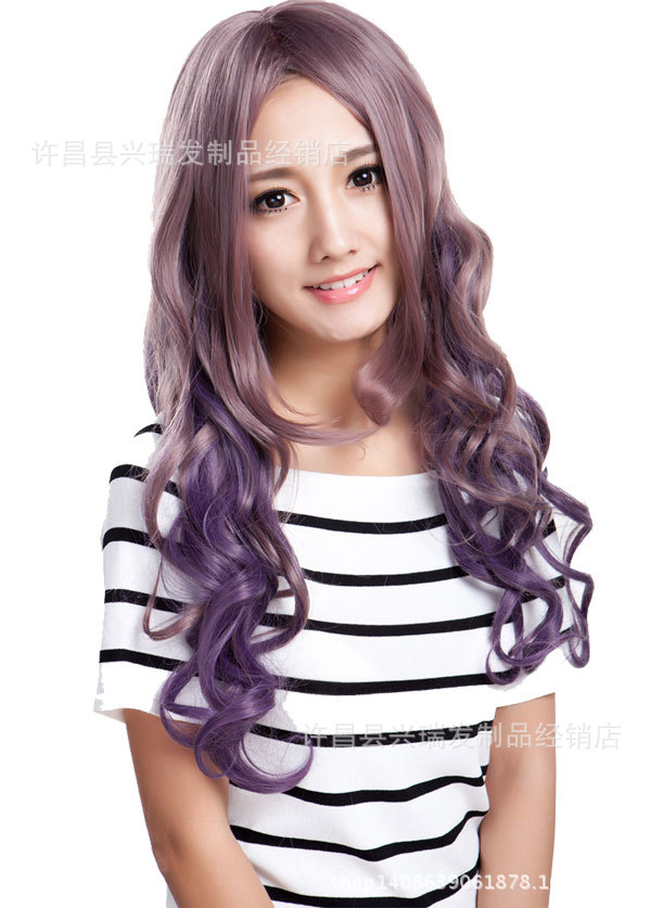 紫色漸變cosplay假發(fā)假發(fā) 漸變色cosplay頭發(fā)假發(fā)彩色漸變紫色