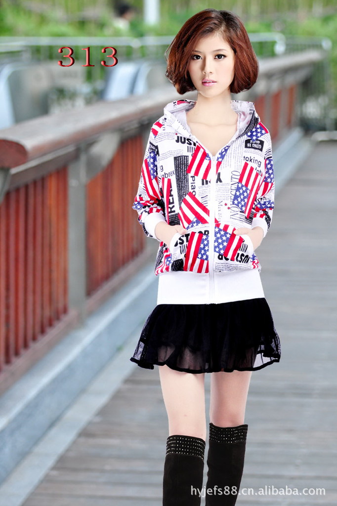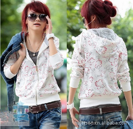 工藝:全面時尚印花,帶拉鏈,連帽,衣袖口及口袋處均有螺紋設計。