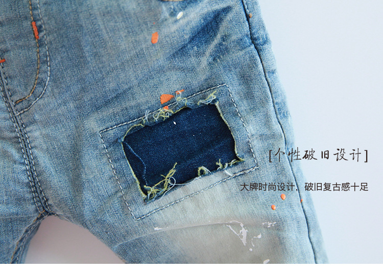 2015春款童褲 韓版寶寶兒童小童男童女童淺色磨破柔軟牛仔背帶褲48.00立即購買