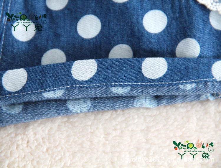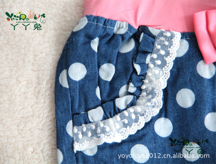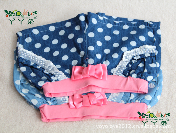 2012女童夏款 湖州丫丫兔 蕾絲邊牛仔色軟面料波點(diǎn)短褲 兩色入