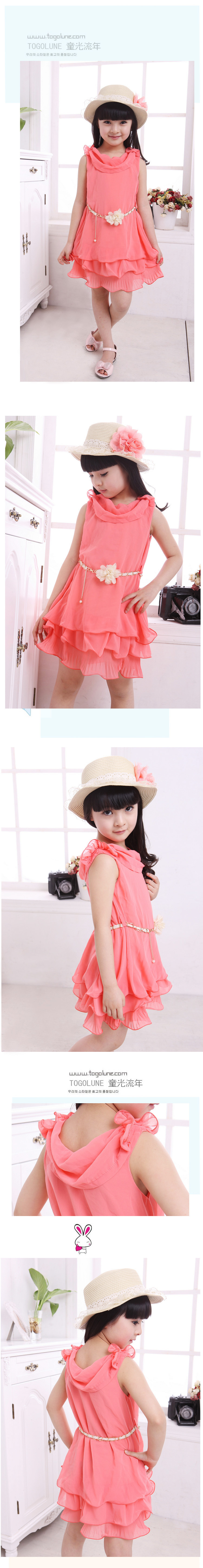2013夏季 時尚潮流無袖繽紛雪紡蛋糕連衣裙 韓版女童