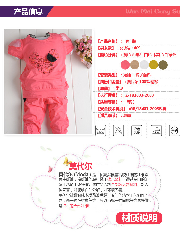2013新款韓版夏裝女童套裝 莫黛爾中大童休閑款童