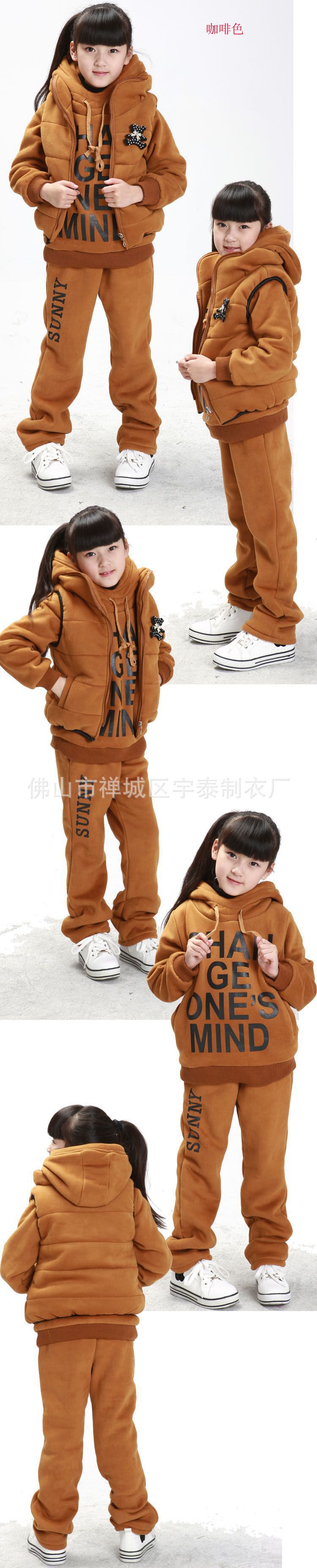 冬款大童全棉女童套裝,3件套大童套裝,大衛(wèi)衣套裝,