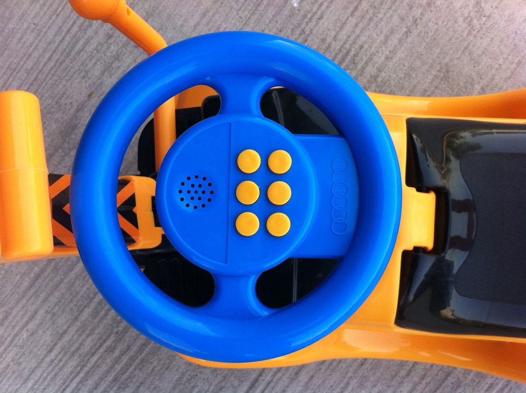 1.寶寶坐在上面可控制放向盤,車頭也會跟著方向盤轉(zhuǎn)動,小腳動動,車子就會開,請買家注意,不是電動車,要靠寶寶的腳的移動車才會向前開哦。