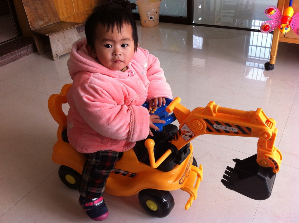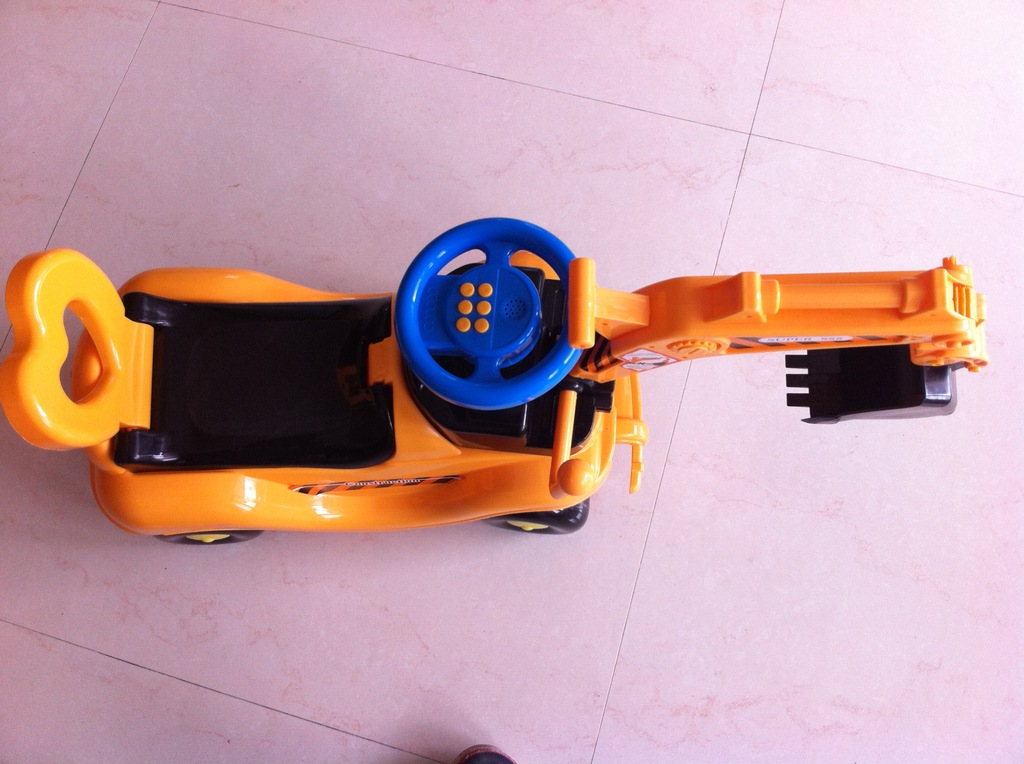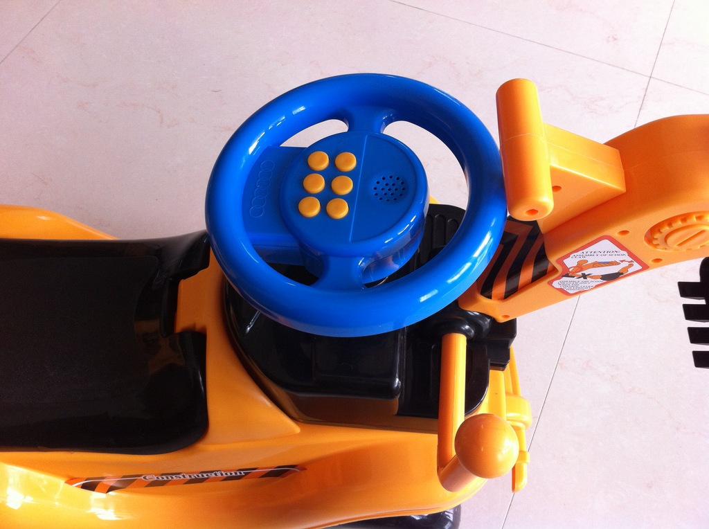 1.寶寶坐在上面可控制放向盤,車頭也會跟著方向盤轉動,小腳動動,車子就會開,請買家注意,不是電動車,要靠寶寶的腳的移動車才會向前開哦。
