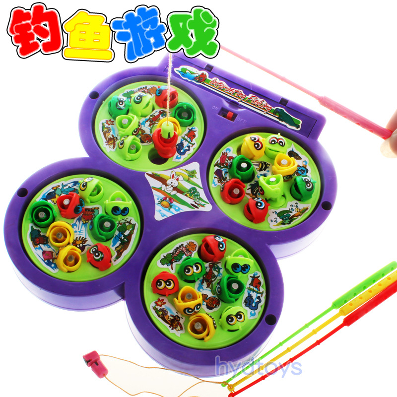此款釣魚是有音樂的,當開關(guān)開啟時,旋轉(zhuǎn)盤就會帶動小魚們開始旋轉(zhuǎn),同時又音樂伴奏!產(chǎn)品配備多根釣魚竿,可以同時多人玩耍!