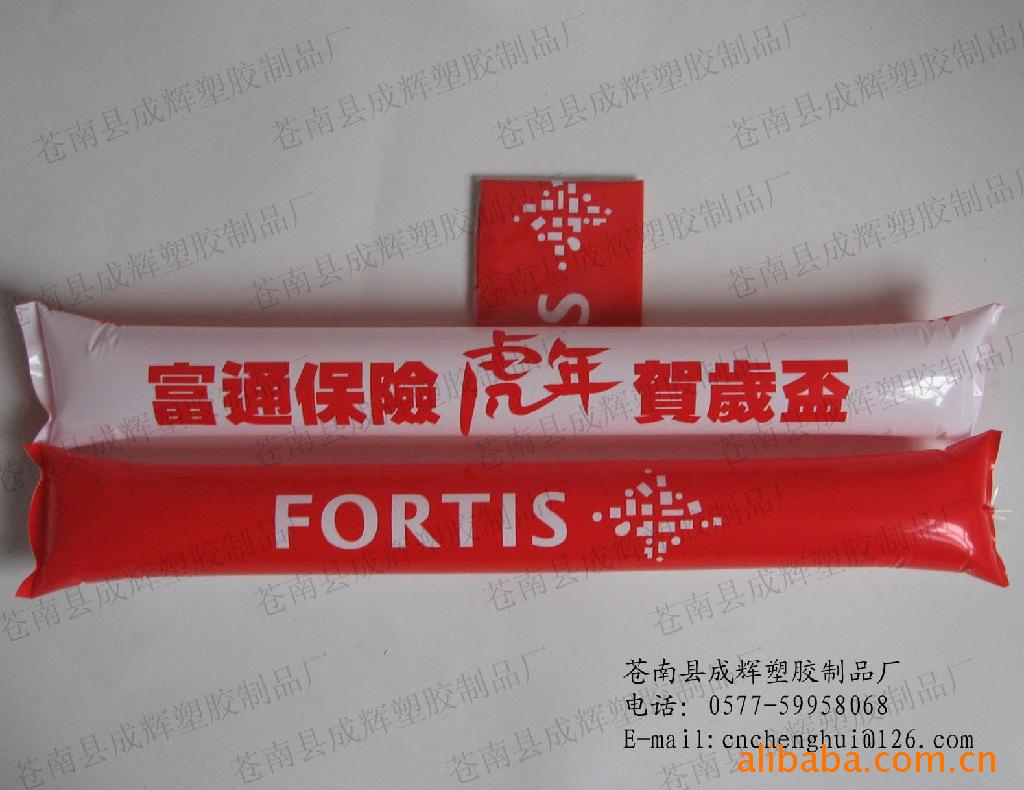 塑料充氣棒由HDPE(高壓膜)材料制成,充氣后互相碰撞能發(fā)出金屬的聲音,制造熱烈氣氛,鼓舞士氣,還可制作成平頭,圓頭,尖頭,帶燈,帶須,等各種形狀,吹氣口充氣后自動封口。