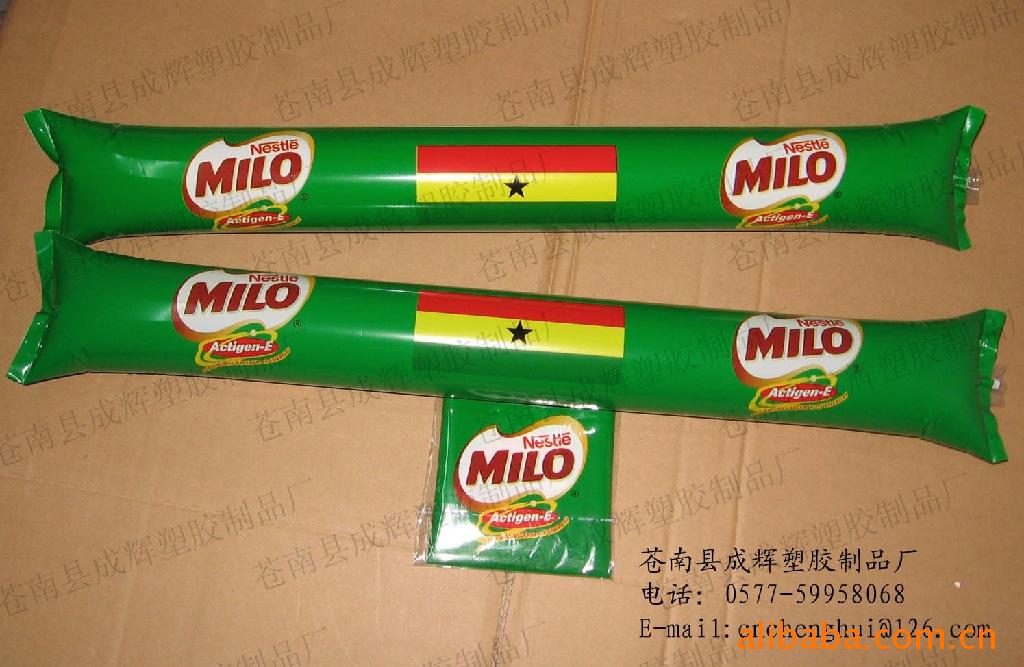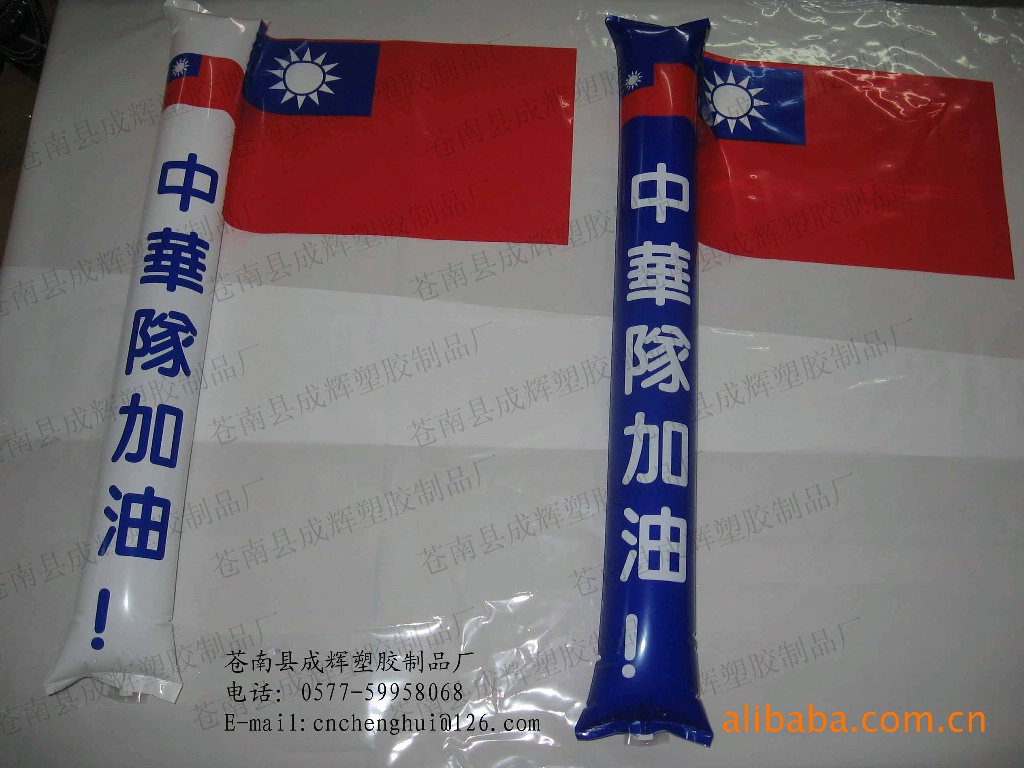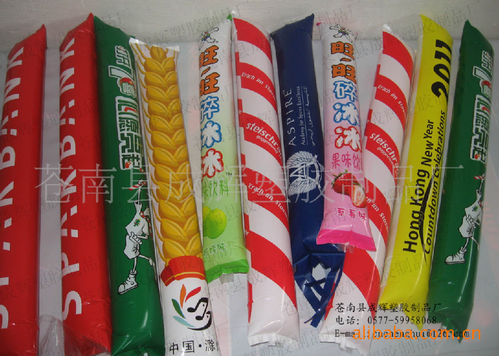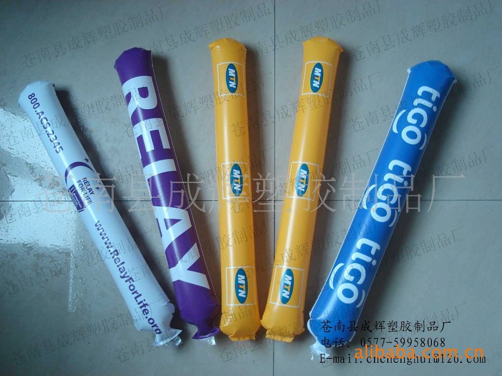 塑料充氣棒由HDPE(高壓膜)材料制成,充氣后互相碰撞能發(fā)出金屬的聲音,制造熱烈氣氛,鼓舞士氣,還可制作成平頭,圓頭,尖頭帶燈,帶須,等各種形狀,吹氣口充氣后自動封口。