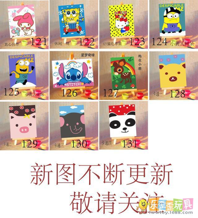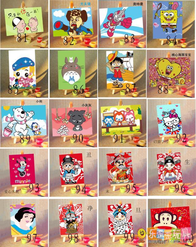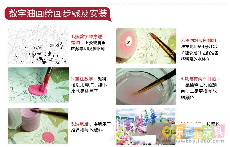 每條顏料條上都粘貼有數(shù)字標(biāo)貼,仔細(xì)觀察原始數(shù)字畫板上各個(gè)小塊的數(shù)字號(hào)碼,然后選出顏料條中對(duì)應(yīng)的數(shù)字顏料用畫筆沾上在畫板上繪制。顏料的顏色數(shù)量較多,在繪畫過程中建議先完成一種顏色后,再填第二種顏色,逐步進(jìn)行繪制。我們的顏料是丙稀顏料,具有一定的覆蓋性,即使您填錯(cuò)了顏色,也可以覆蓋糾正。繪畫過程中如有疑問還可參照樣圖進(jìn)行繪制。