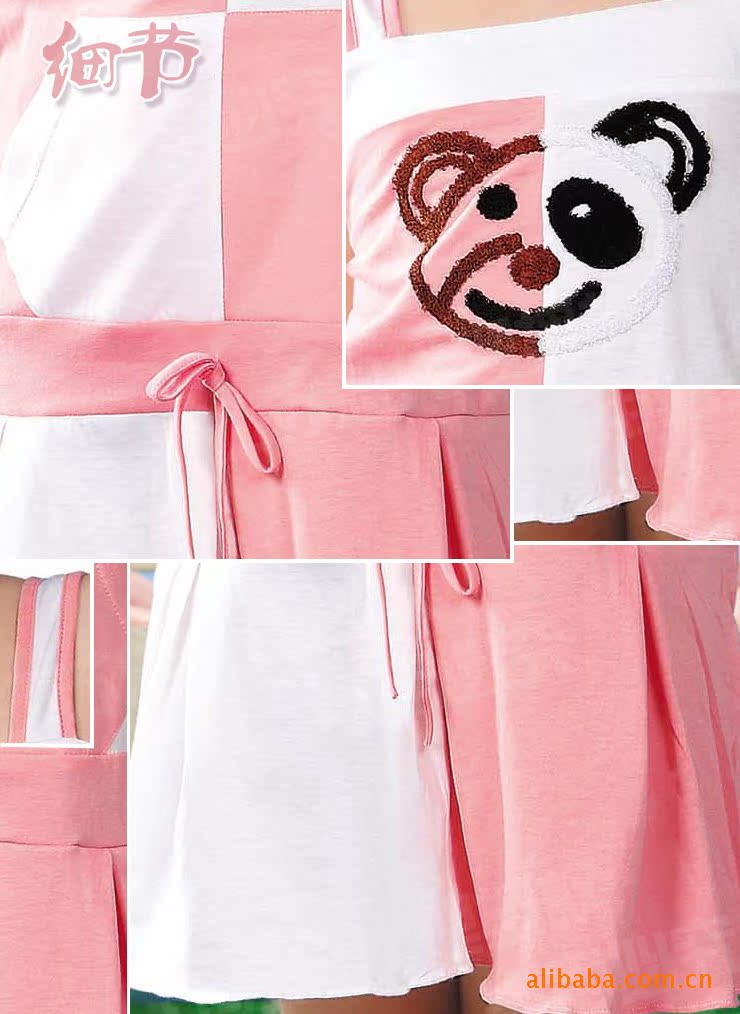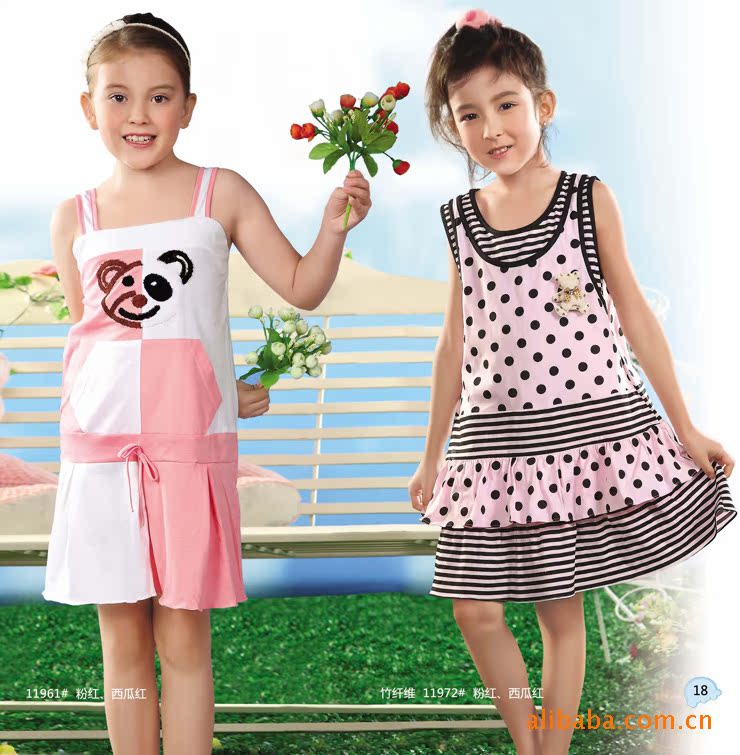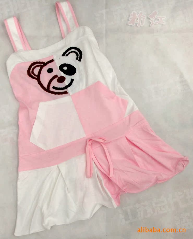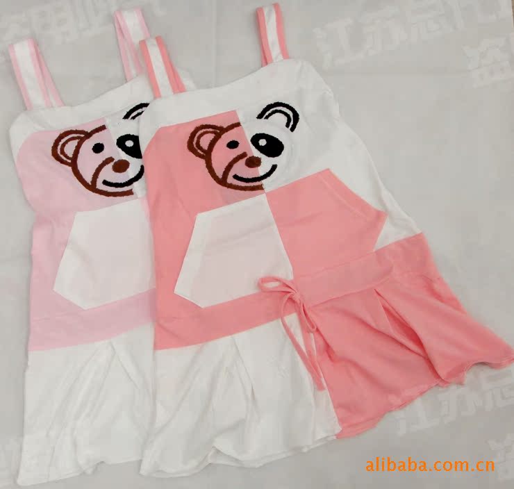 正品樂之星夏季新款可愛小熊款女童寬吊帶睡裙11961圖左
