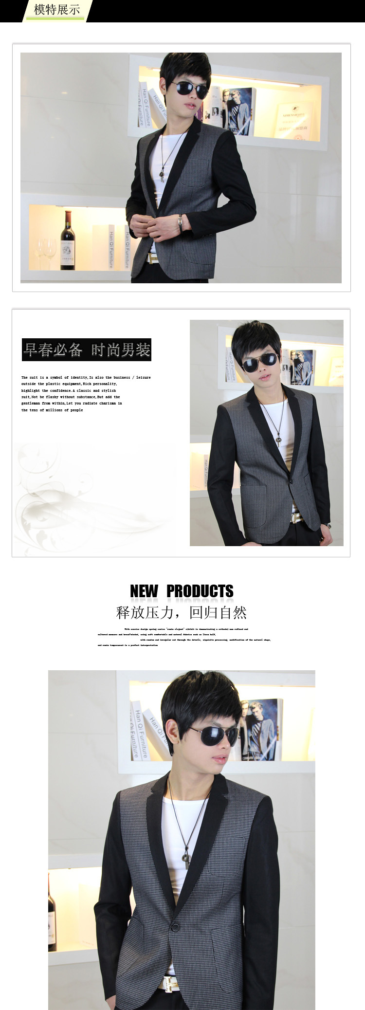 2013秋裝休閑格子西服 男士時(shí)尚修身西服上衣 淘寶貨源