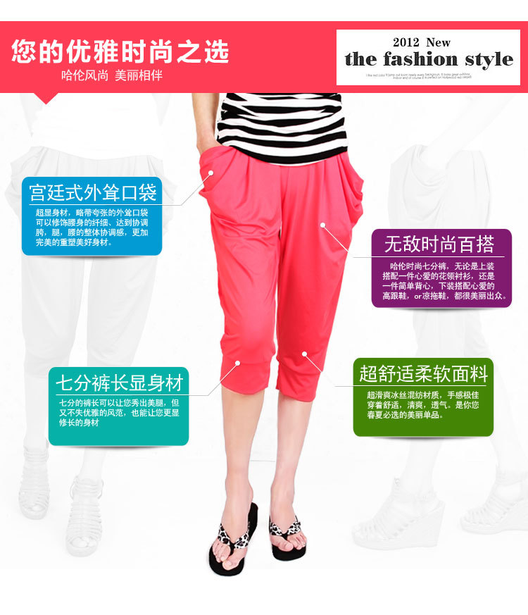 新款女士七分褲哈倫褲質(zhì)量非常不錯(cuò),面料非常的考究,我們采用的是牛奶絲,非常很順滑。春夏穿著保證非常舒服,只要你敢批發(fā),還會(huì)再來(lái)批發(fā)的!