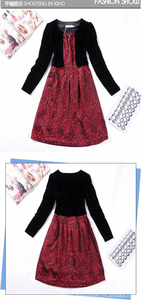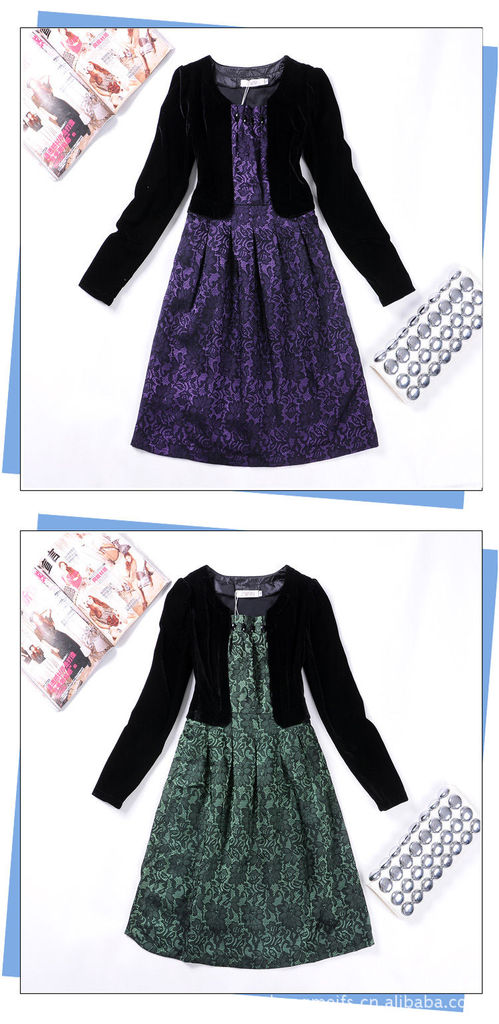 2011新款秋裝,韓式高腰淑女印花假兩件套長袖連衣裙 招網(wǎng)絡(luò)代銷