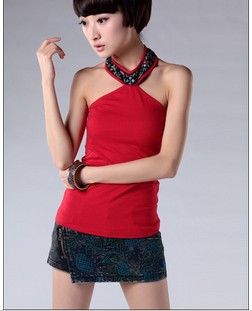 2011新款 V字繡花帶 肚兜修身吊帶 心鎖