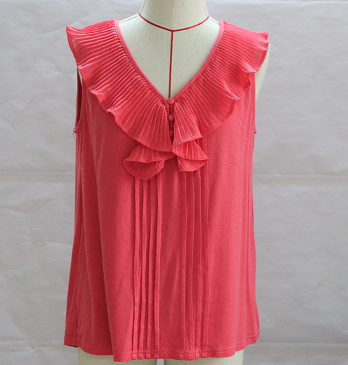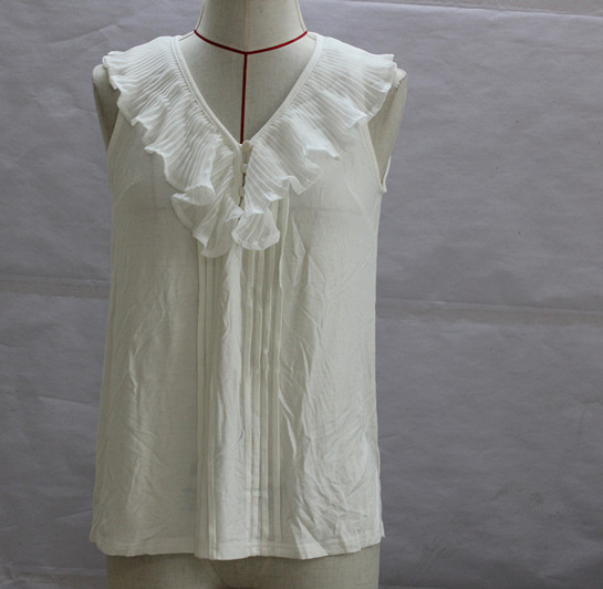 2013夏款 韓版雪紡條褶 氣質(zhì)款無袖襯衫批發(fā)057