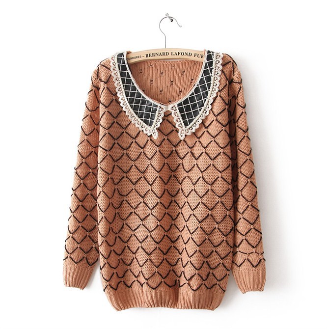 D79-14-012 歐美新款格子領(lǐng)套頭毛衣
