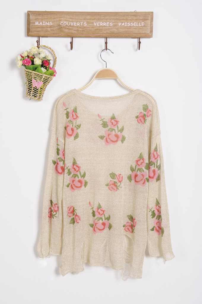 D101-11-066嗆口小辣椒wildfox玫瑰花薔薇破洞毛衣針織衫