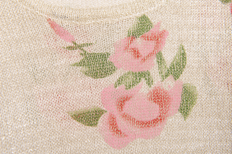 親們:注意嘍:這款針織衫真的非常難做,難做是因為它上面的玫瑰花朵,并不是印上去的,都是進口機器織上去的,親們仔細數(shù)看下,可發(fā)現(xiàn)一朵玫瑰有五種顏色,真的非常立體,非常漂亮,與原版一樣。還有它的撕毀效果,看似無心,卻又那么的恰到好處。一切都是那么完美。