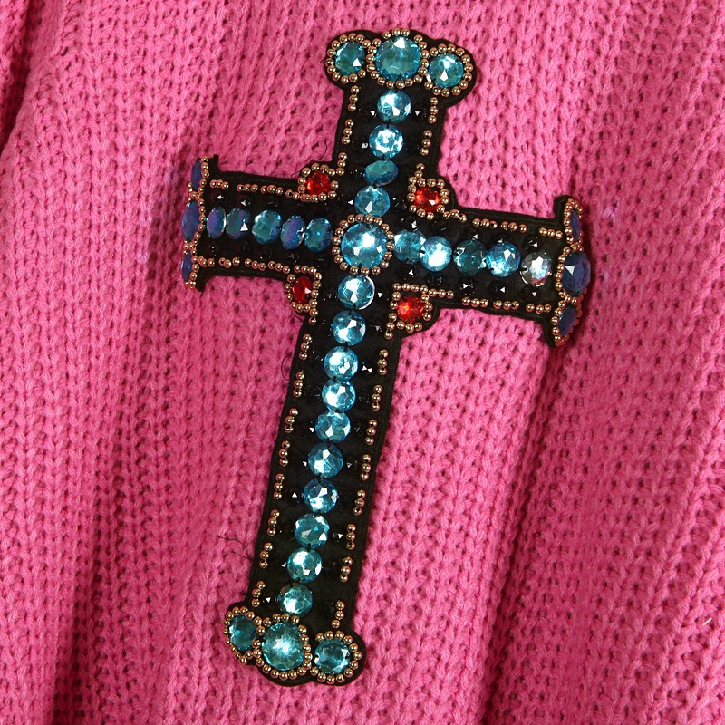 此款衣衣采用毛線面料、柔軟細膩的親膚感、透氣舒適、面料彈性大、豐滿的MM也可穿著的哦、身合身版型、前短后長手工釘珠十字架泡泡袖百搭套頭毛衣、靚麗動人、甜美可愛、雅致秀出玲瓏曲線美感、窈窕迷人、洋氣百搭、無論是甜美系還是休閑風的粉絲們、這款無疑是你們秋冬百搭的選擇單品、推薦喲~~
