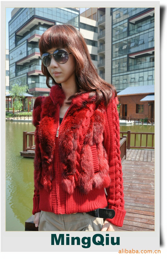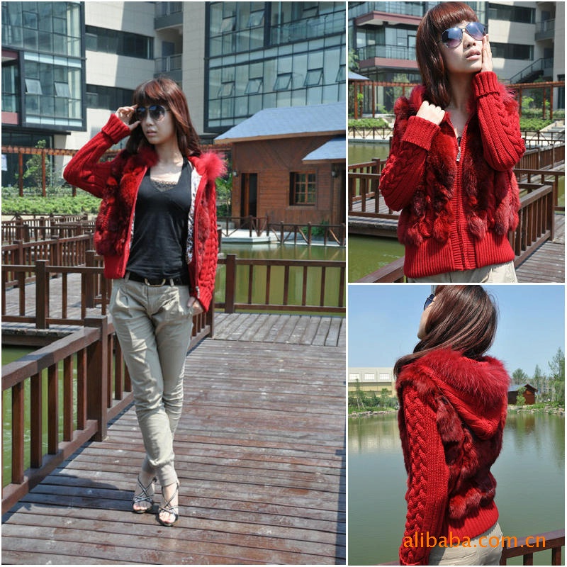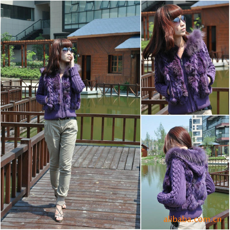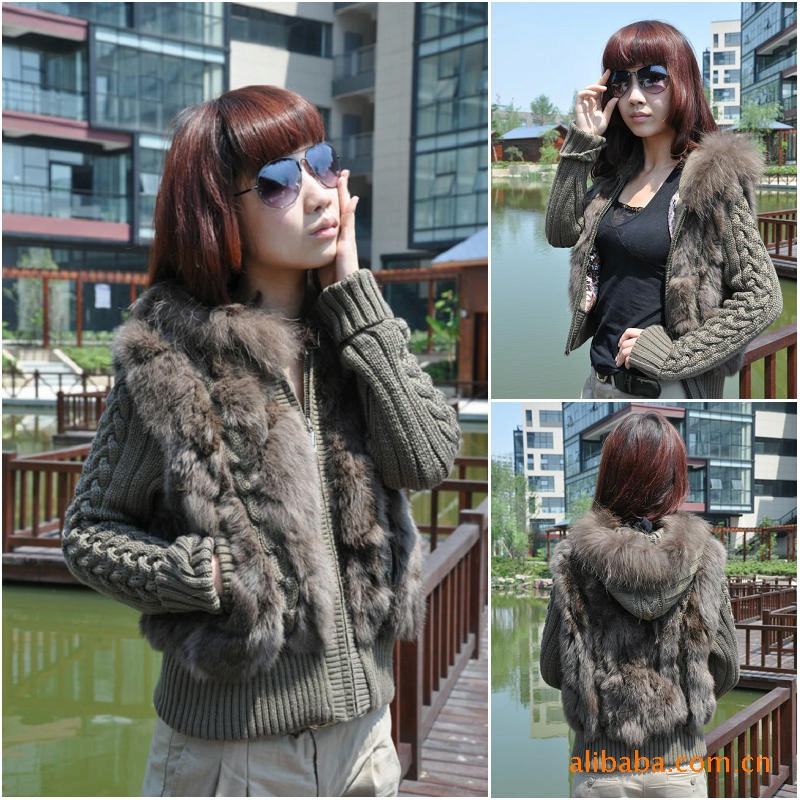 皮草 兔毛加毛線 外套 裘皮服飾