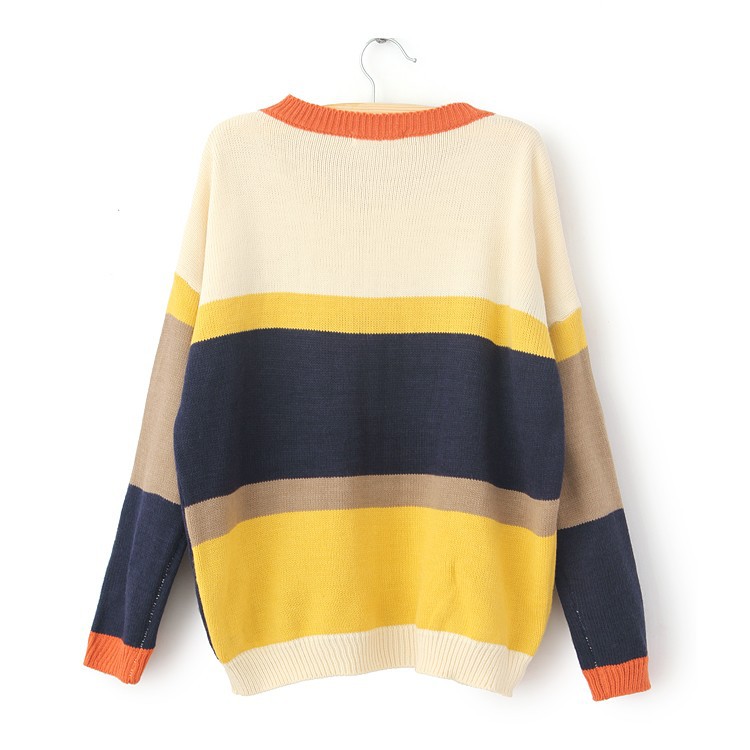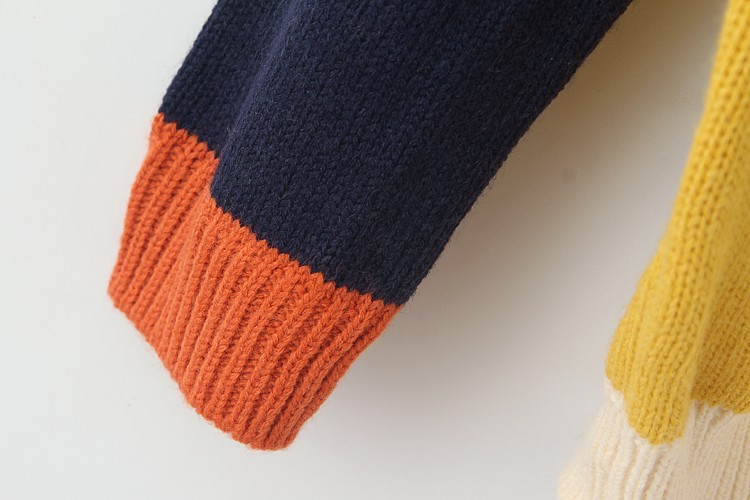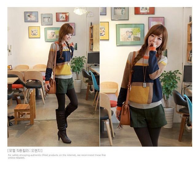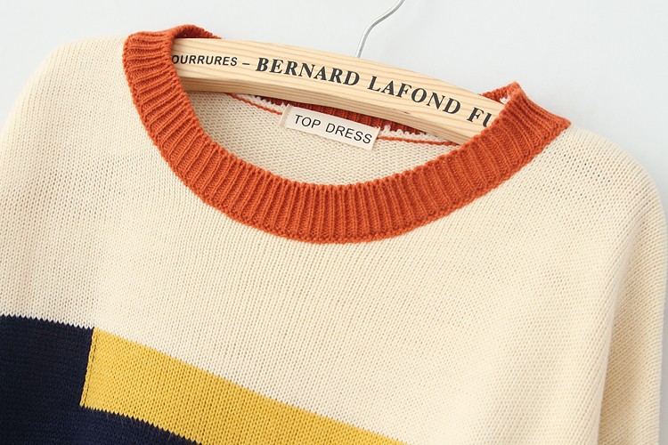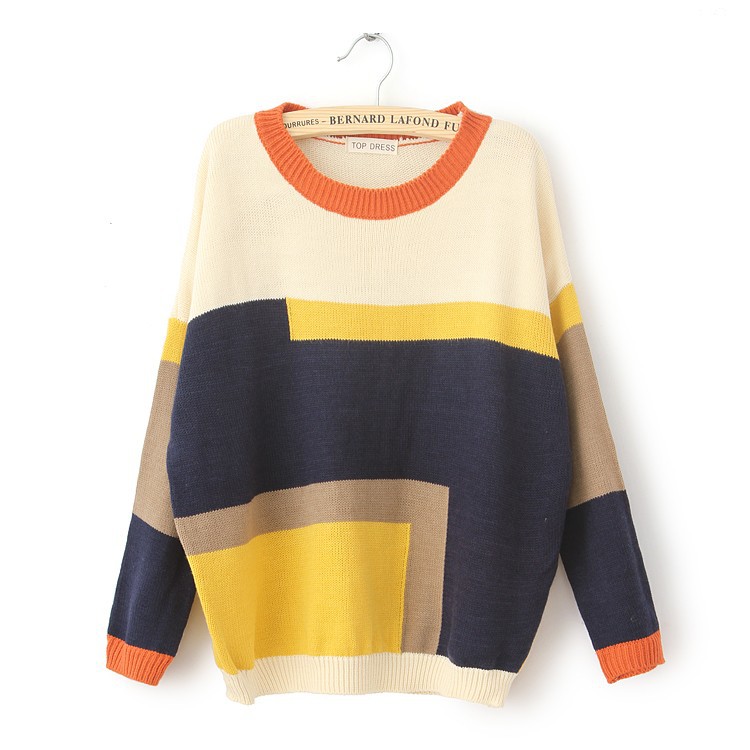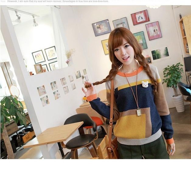 2013秋冬新款女式毛衣套頭圓領(lǐng)撞色長袖拼色韓版羊毛衫