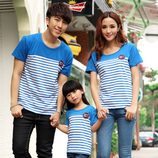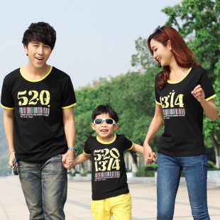 廠家直銷2014新款純棉親子裝全家裝品牌休閑短袖t恤一件起批 包郵15.0 ¥15.0熱銷0