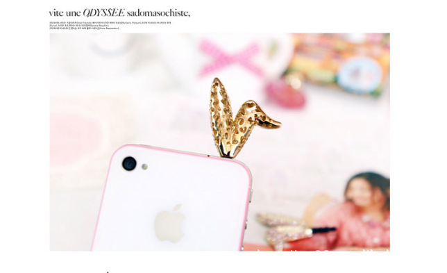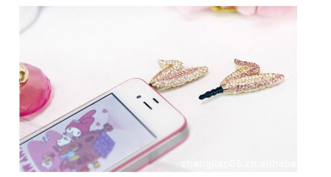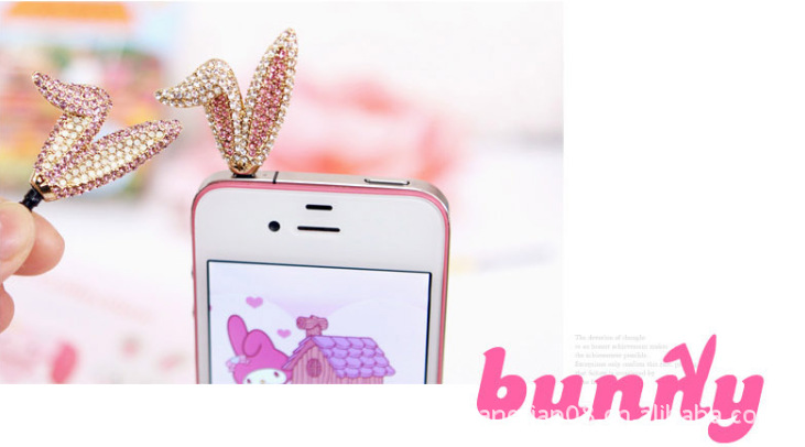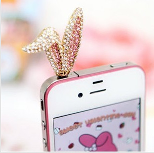 韓國(guó)進(jìn)口可愛鑲鉆水鉆兔子耳朵iphone4s手機(jī)塞防塵塞