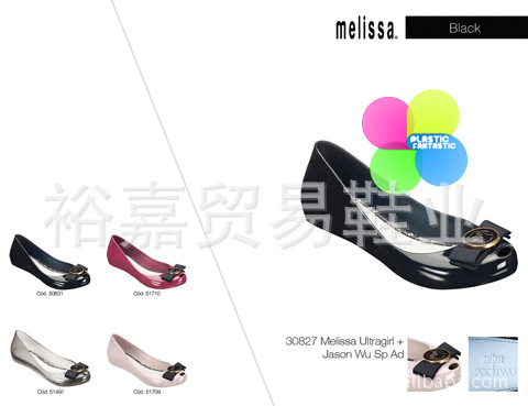 Melissa Ultragirl Jason Wu系列果凍鞋有平底芭蕾鞋和露趾高跟鞋兩款,每款分別有黑色、裸色、酒紅色、透明灰四種顏色。其中,平底芭蕾果凍鞋上還飾有超級萌的吳季剛 (Jason Wu) 貓頭鷹Logo蝴蝶結(jié);而露趾高跟鞋頭的金屬鞋飾則是來源于吳季剛 (Jason Wu)2011秋冬女裝系列的元素;每一款鞋的內(nèi)里細節(jié),都還裝飾有性感的黑色蕾絲鑲邊,一款透明灰芭蕾鞋更是全部飾以蕾絲裝飾。