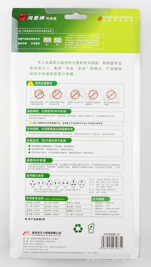 優(yōu)質(zhì)磷銅片配合插套嚙合技術(shù),彈性強(qiáng)勁,嚙合妥帖,有效防止電弧產(chǎn)生,正常使用8年不松動(dòng),并能適合多國插頭。