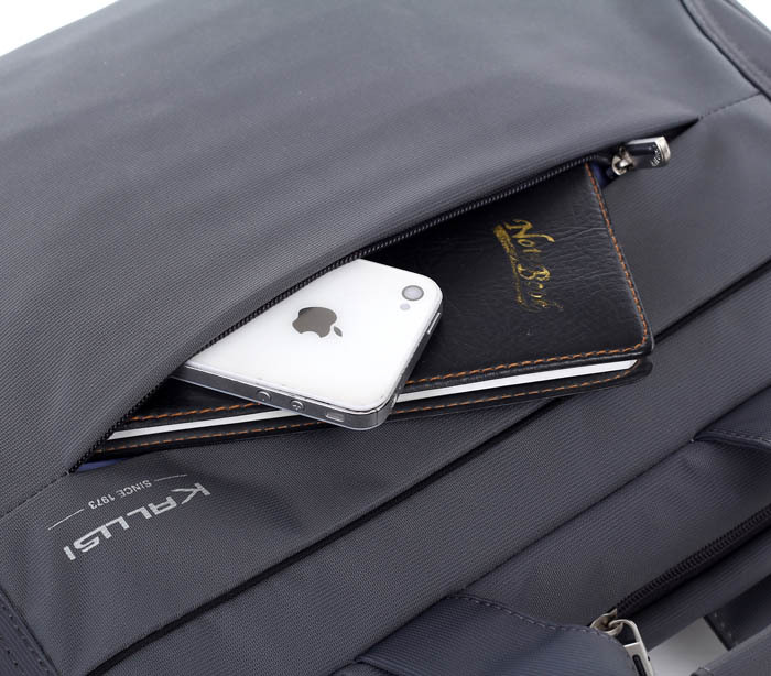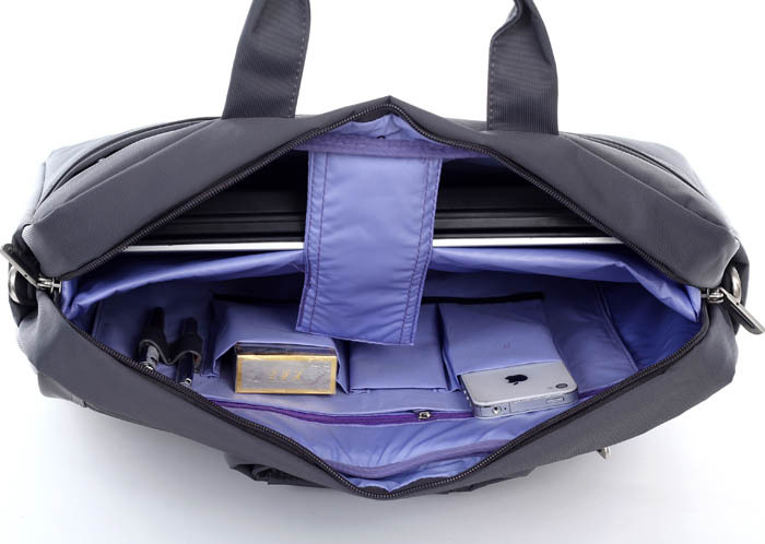 【包包結(jié)構(gòu)】:包包分為兩個隔層,正面?zhèn)€隔層可放一些筆、名片等小件物品。中間的隔層有筆記本專用的防震保護(hù)層,防震防摔。背面的小隔層可放一些紙張等。