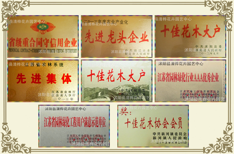 本場(chǎng)立足本鎮(zhèn)10萬畝花卉苗木產(chǎn)業(yè)規(guī)摸,實(shí)行公司+農(nóng)戶的經(jīng)營方式, 本場(chǎng)8年來,曾多次被評(píng)為“沭陽縣明星企業(yè) ",重合同,守信譽(yù)”企業(yè) 。
