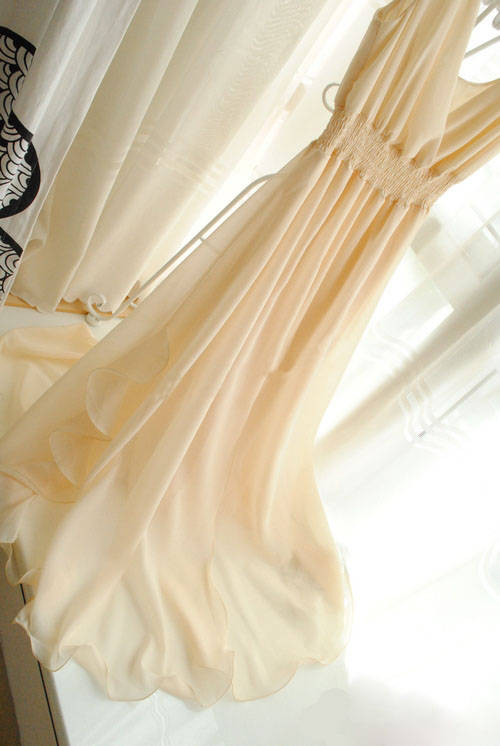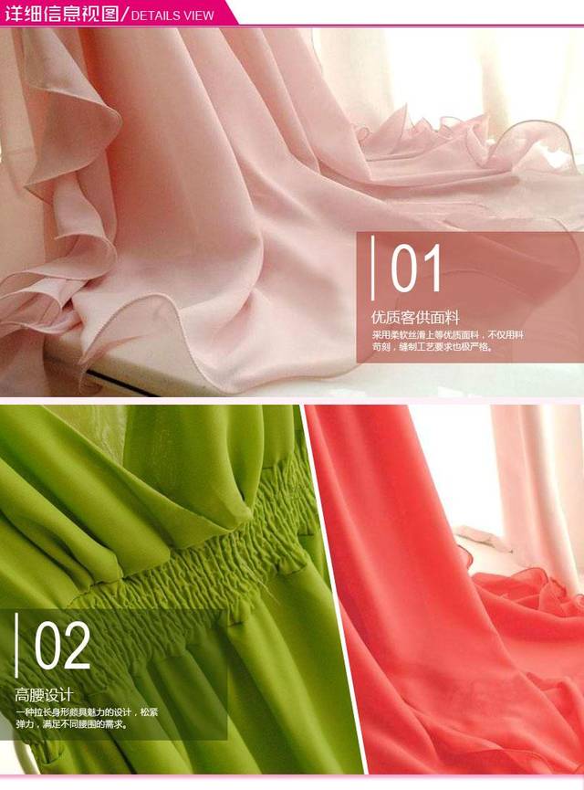 很唯美的一條美裙~這個(gè)質(zhì)地。這個(gè)做工。其他店子180以上的價(jià)格~裙擺是雙層雪紡的。裙子料子很垂。很墜手。下擺左右兩側(cè),大大的荷葉邊,穿起來很美哦!裙子下擺中間采用n形開叉設(shè)計(jì),開叉長(zhǎng)度48厘米左右!腰圍是松緊的。裙子很大氣! 氣場(chǎng)很足! 雪紡質(zhì)地。怎么都不比棉質(zhì),。覺得不會(huì)露。建議親們穿肉色內(nèi)衣內(nèi)褲哈。下擺有上雨絲線!更能體現(xiàn)出裙子的整體效果還有記得要穿高跟鞋喔! 更能突出裙子的飄逸、